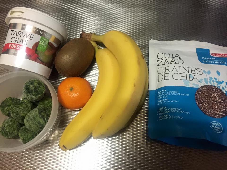 Een groene smoothie kan ervoor zorgen dat jij snel en makkelijk een dosis ijzer en vitamine C binnenkrijgt. Dit waren mijn ingrediënten de laatste keer. Ik gebruikte bevroren groente (handig als je bijv. haast hebt :-)).